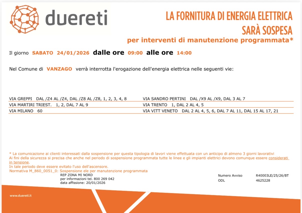 Nell’ambito dei lavori di risoluzione delle interferenze legati al Potenziamento Rho-Parabiago, Duereti ha comunicato l’interruzione del servizio per la mattinata di sabato 24 gennaio 2026 dalle 9.00 alle 14.00 per le zone interessate, ovvero: