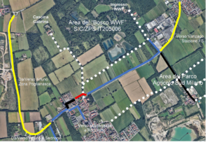 Per apprezzare la visione completa del sistema di mobilità dolce che coinvolge il Bosco WWF e il Parco Agricolo Sud Milano dopo la realizzazione degli interventi richiesti ai due Data Center succitati, si rimanda alla figura seguente.