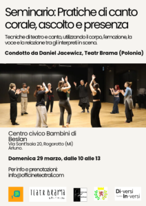 Tecniche di teatro e canto, utilizzando il corpo, l'emozione, la voce la relazione tra gli interpreti in scena
