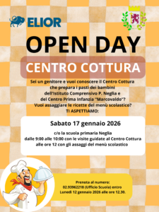 In occasione dell’ Open Day delle scuole, si ricorda l’opportunità di vistare anche il Centro Cottura che prepara i pasti per l’Istituto Neglia e il Centro Prima Infanzia Marcovaldo.