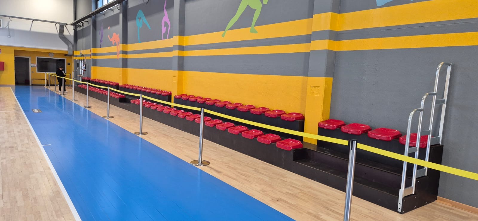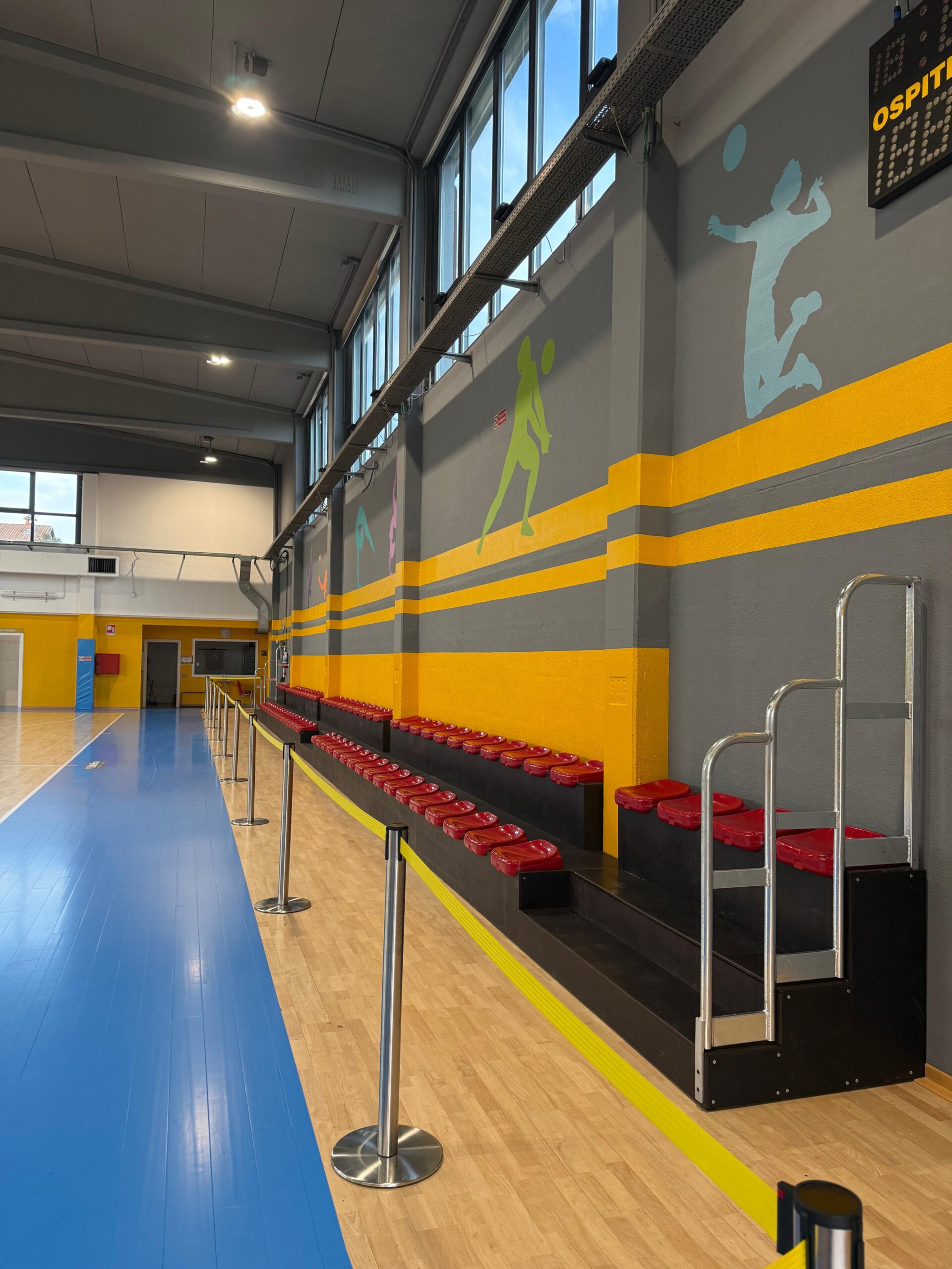 Palestra Airaghi | Installata la tribuna a completamento dell’intervento di riqualificazione