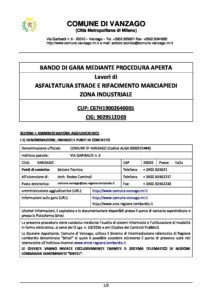 Procedura aperta con inversione procedimentale per l’affidamento dei lavori di ASFALTATURA STRADE E RIFACIMENTO MARCIAPIEDI ZONA INDUSTRIALE