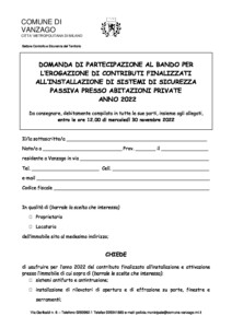 Vanzago Sicura 2022 | Erogazione di contributi per installazione di sistemi di sicurezza passiva